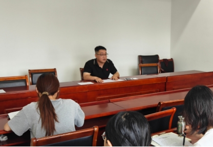 图为党务人事部部长张重围绕《公司介绍及行政类工作实务》进行培训